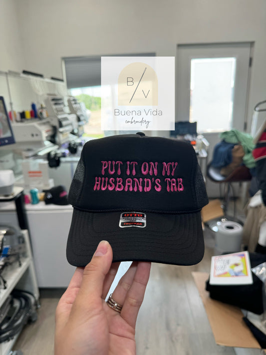 Put It On My Husband's Tab Embroidered Hat, Custom Trucker Hat