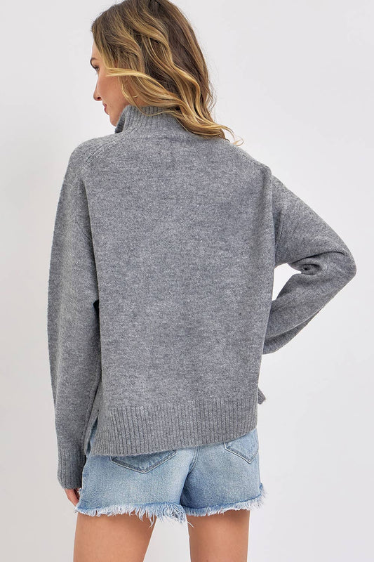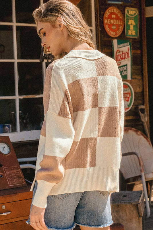 Checkered Side Slits Drop Shoulder Oversized Sweater