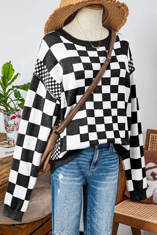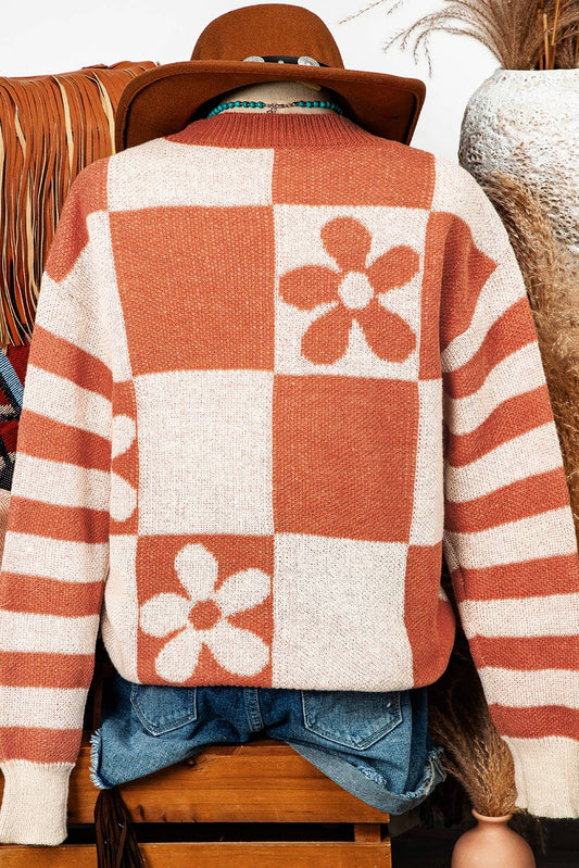 Brown Stripe Side Slits Crewneck Short Sleeve Sweater Tee